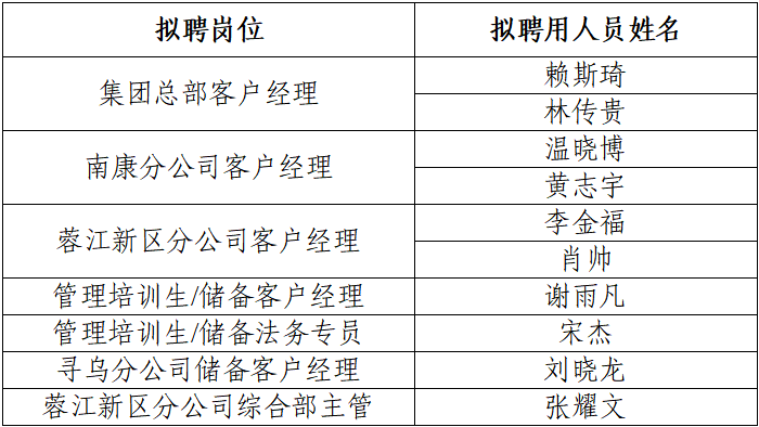 贛州市融資擔(dān)保集團(tuán)有限公司關(guān)于公開招聘擬聘用人員的公示